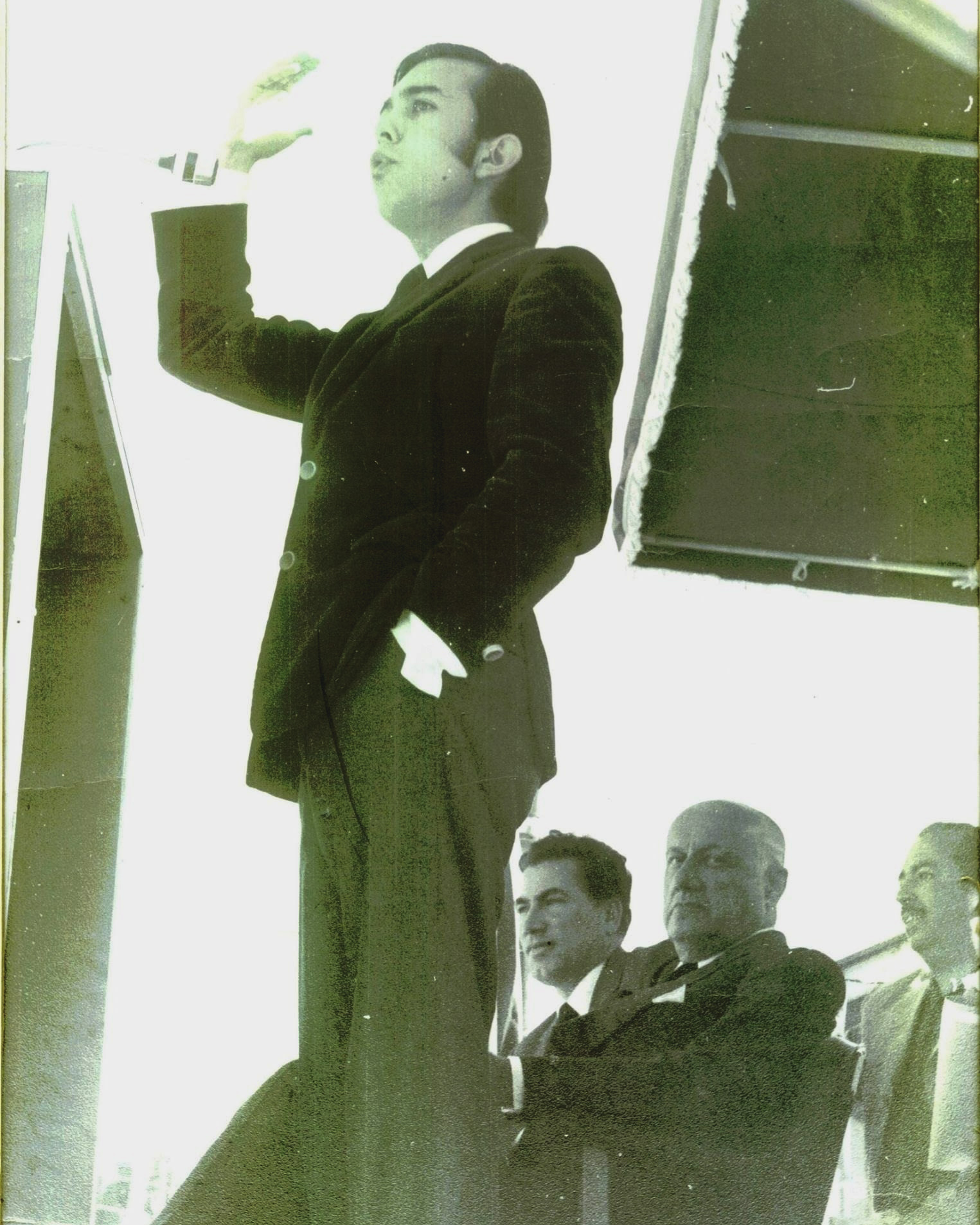Junto al ex Presidente de la República don Jorge Alessandri y don Patricio Mekis, dirigente del Partido Nacional y Ex Alcalde de Santiago dando un discurso en la Plaza de Armas de Talca-